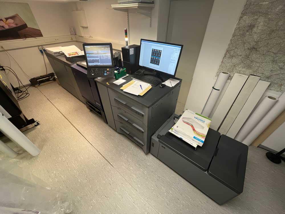 Bei uns gibt es alles aus einem Haus, auch die Druckerei. Nach unserer Gestaltung schicken wir die druckfertigen (und vom Kunden freigegebenen) Dateien auf unsere modernen Maschinen (Drucker, Plotter, Laser, und mehr) und verarbeiten die Produkte bis zur Fertigstellung, indem wir sie beispielsweise laminieren. Wir arbeiten Millimeter genau und garantieren Ihnen einwandfreie Qualität. Dank Color Management und Proofs können Sie sich außerdem auf vollste Farbgenauigkeit freuen. Bis zu 1,60 Meter kann unser Großformat-Drucker.